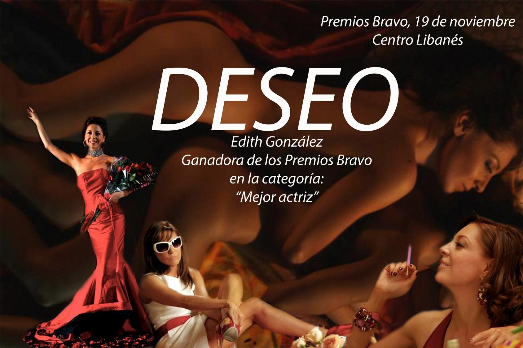 Edith González ganadora de los Premios Bravo en la categoria "Mejor actriz" por DESEO, 19 de noviembre Centro Libanés.